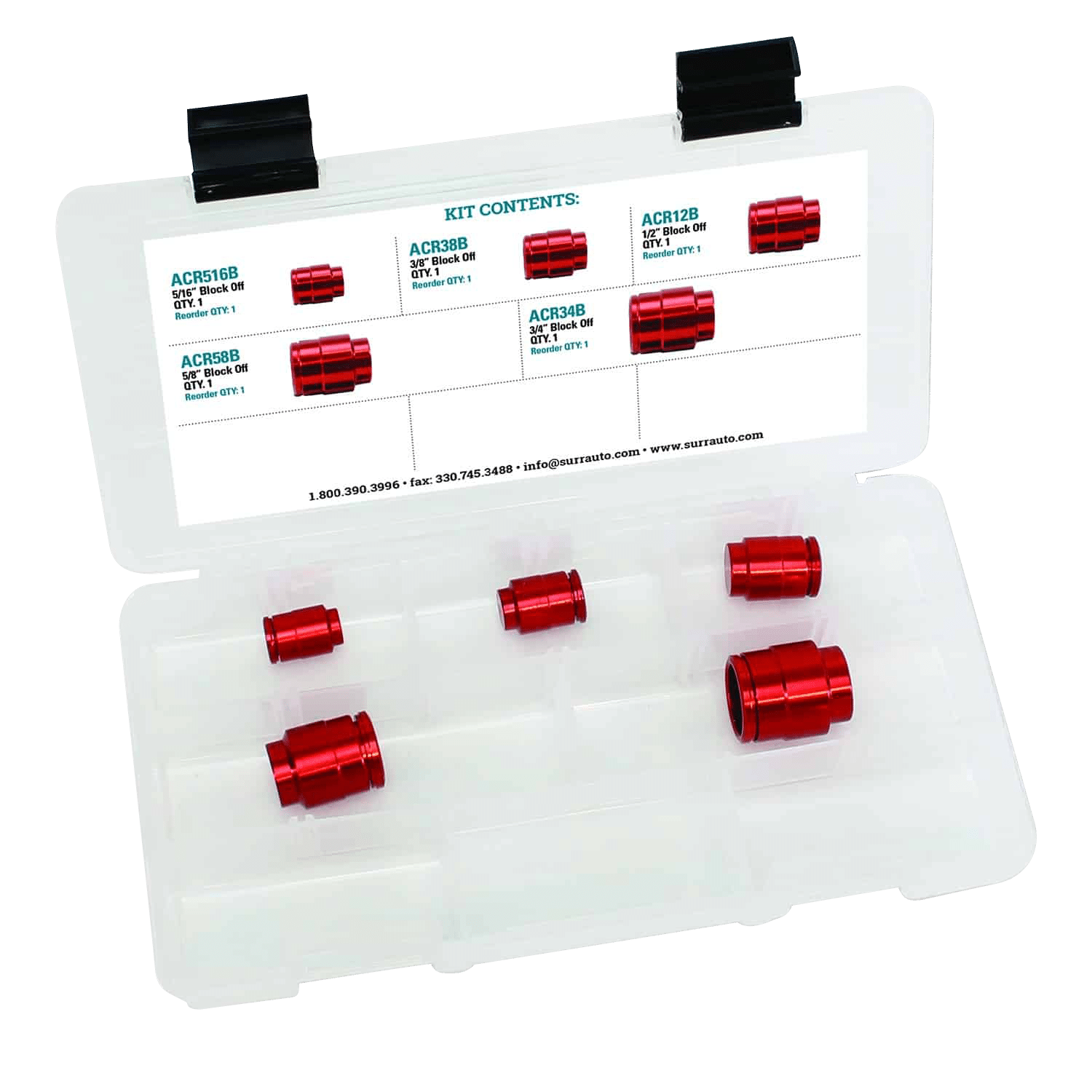 Includes 5/16”, 3/8”, 1/2”, 5/8” and 3/4” block offs (Qty. 1 each, size marked on fitting)