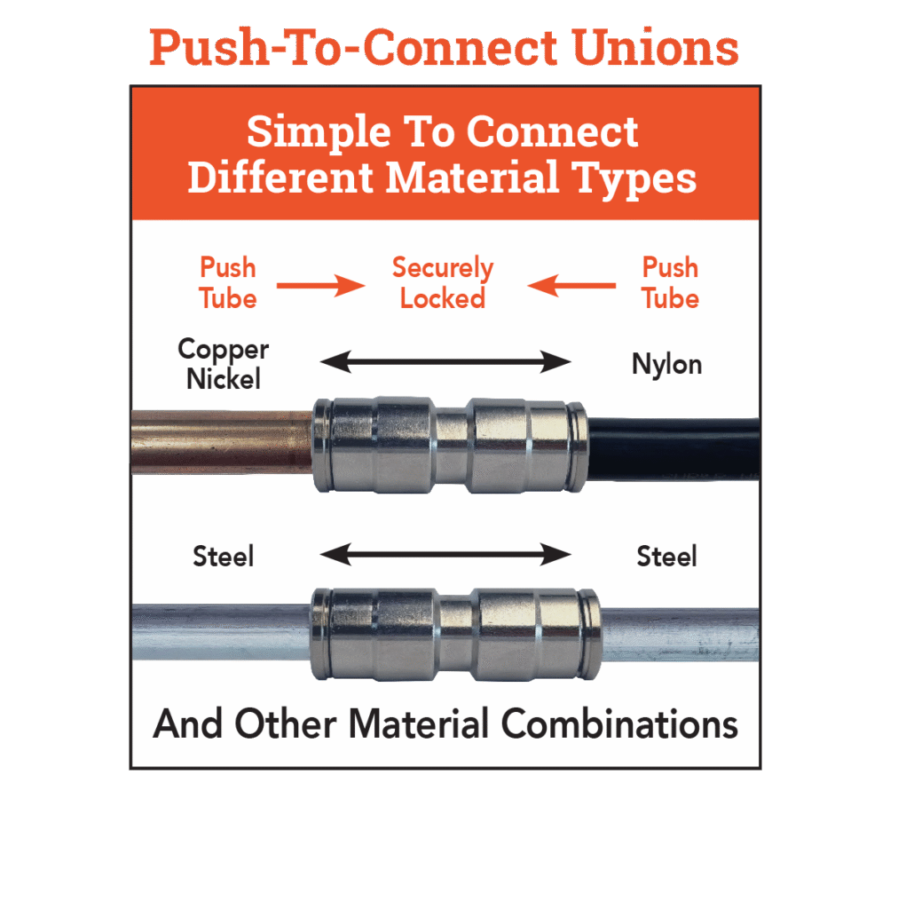 Push-To-Connect Technology for Connecting Steel, Copper, Nickel, PVF & Nylon Tubing